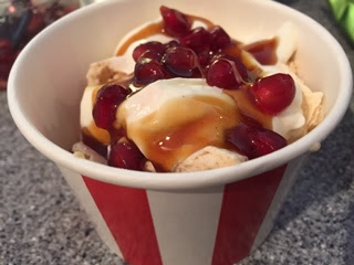 Meringues are the bane of my life. It’s not so much about making the perfect macaron as getting a simple meringue to not stick to the paper. After many failures I decided to sign up for a course at Cakes 4 Fun in Putney, which was brilliant; you can read about what I did here. After the course, I made a pavlova from a Nigella Lawson recipe at home, and it turned out perfectly. Fully of confidence, I asked for the Meringue Girls book for my birthday, and recently made a pavlova from that – it was undercooked in the middle and stuck to the paper. I had to turn it into a sort Eton Mess with some Carte d’Or Eton Mess flavour ice cream, pomegranate seeds and some pomegranate molasses (which I had bought for the pavlova recipe) drizzled over the top.