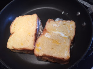 Mix a beaten egg with a dash of milk, 1 tbsp sugar and a splash of vanilla and dip each slice of bread into it.