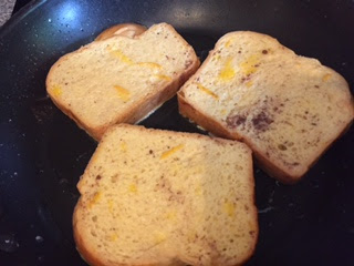 I bought a loaf of pre-sliced brioche which made the recipe very easy. To serve two people, you just need to mix 1 egg, 50ml milk, a dash of vanilla essence, a sprinkle of cinnamon and sugar and the zest of one orange in a wide shallow bowl, and dip each slice of bread in.