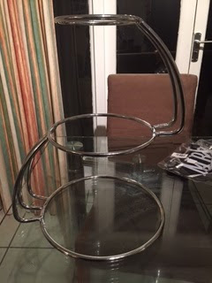 Each cake had a piece of ribbon around the bottom and another around the edge of the cake board in the exact same shade as our bridesmaid dresses; I got the ribbon from Fantastic Ribbons. We also had to purchase cake boards, cardboard boxes to store and transport the cake, and I bought this cake stand from Windsor as I wanted one where each tier of the cake would be separated, so you could see the cow print on the top.